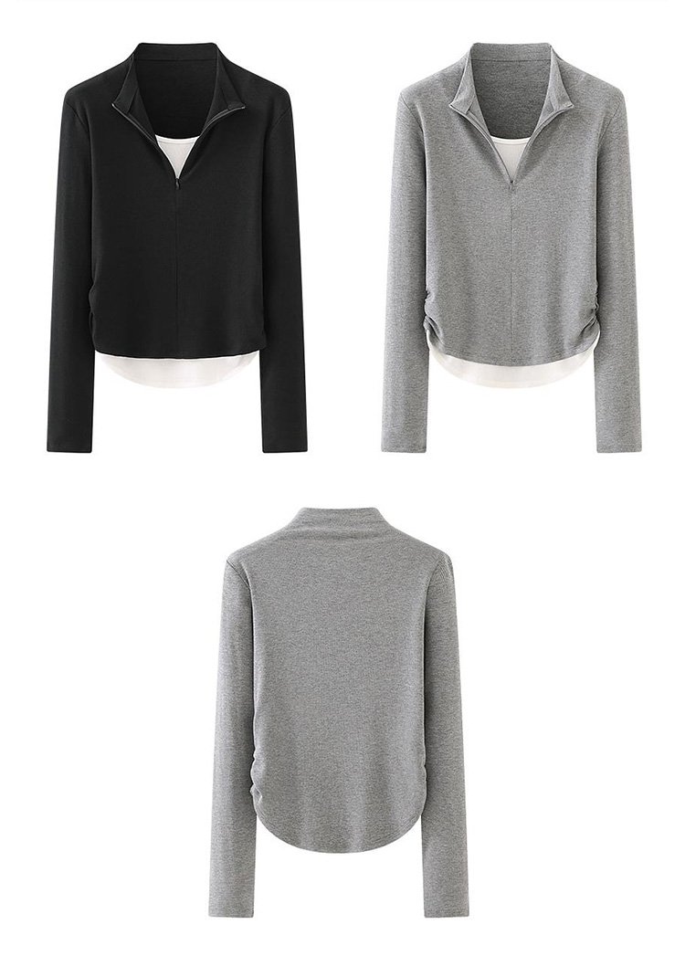 단색 슬림핏 페이크 투피스 여성 니트 티셔츠