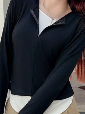 단색 슬림핏 페이크 투피스 여성 니트 티셔츠